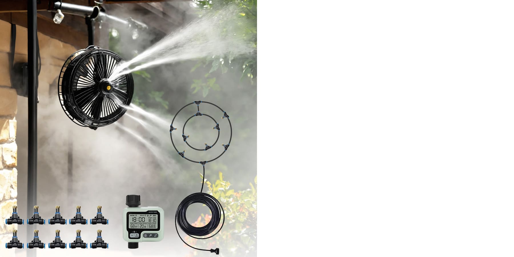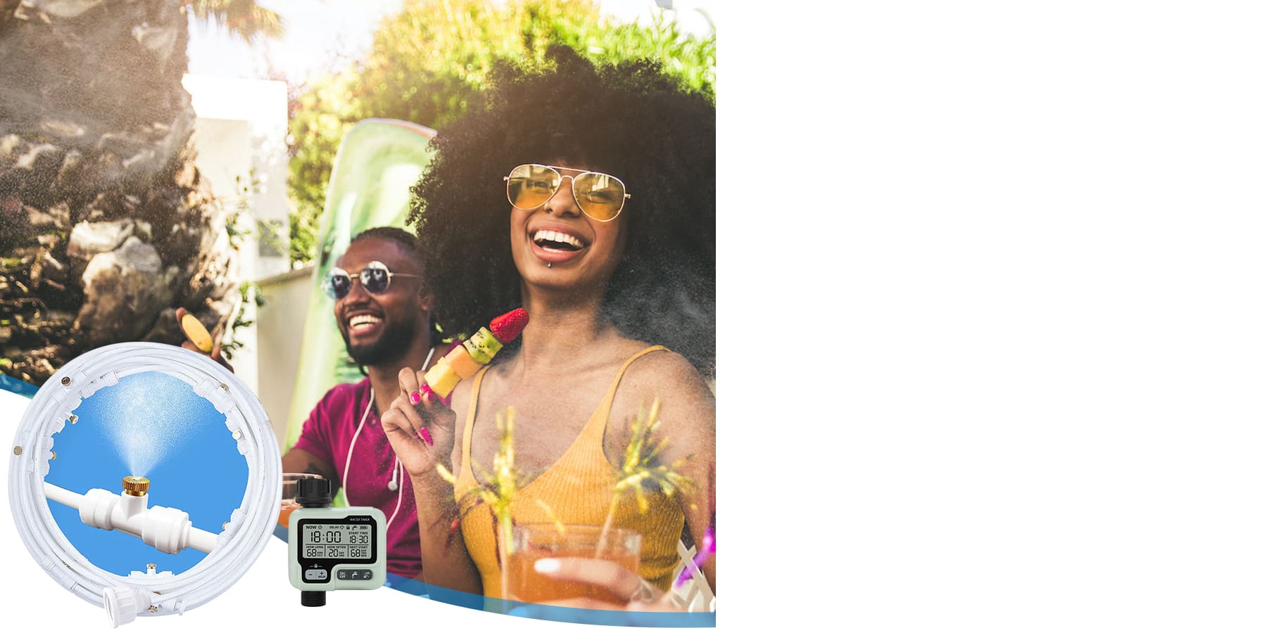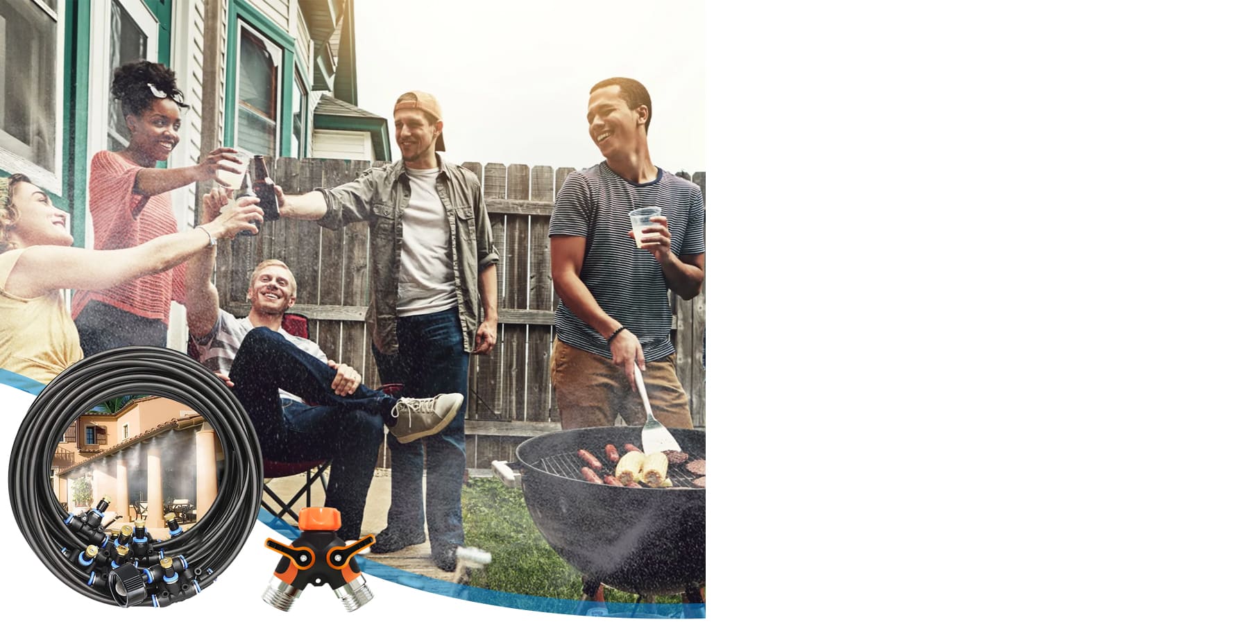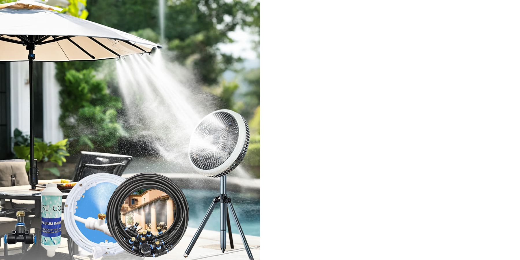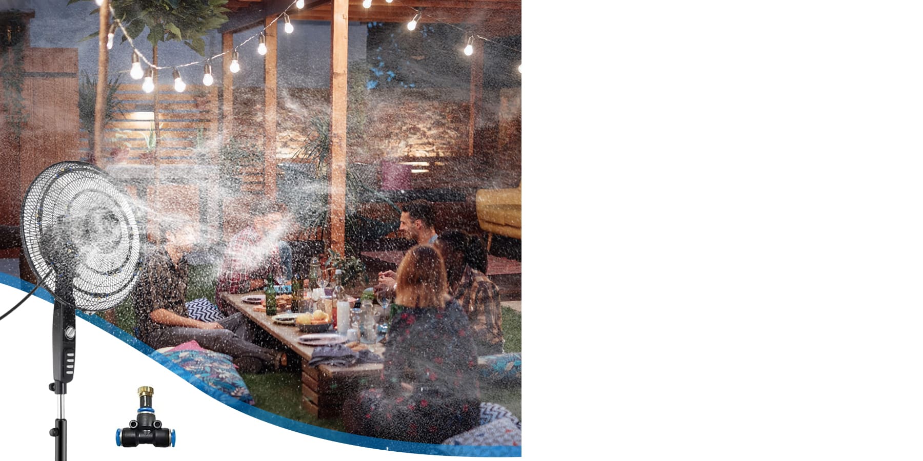 Select misting fans cooling equipment to keep your barbecue party cool and comfortable.