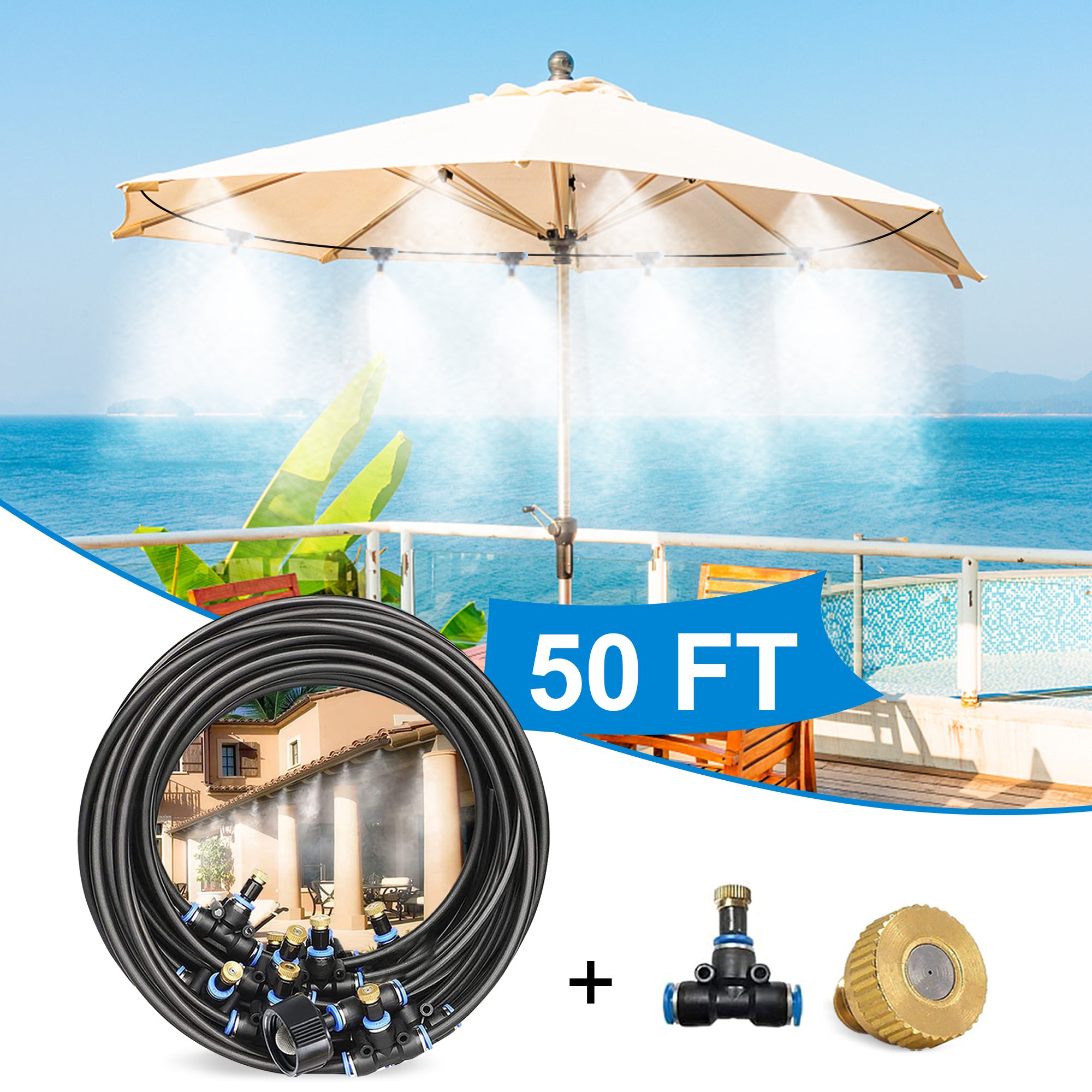 Misters for Outside Patio 50ft, Outdoor Misting Cooling System