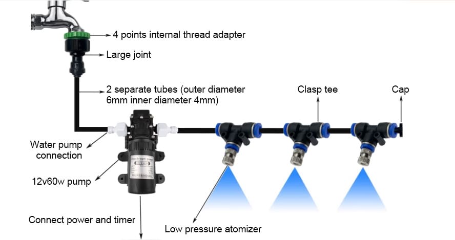 • Punch small holes in the tubing at the locations where you want to install the misting nozzles. Insert the misting nozzles into the holes, ensuring they are firmly in place. Some kits may have nozzles that screw in or snap into place. Ensure the nozzles are evenly distributed for optimal mist coverage.